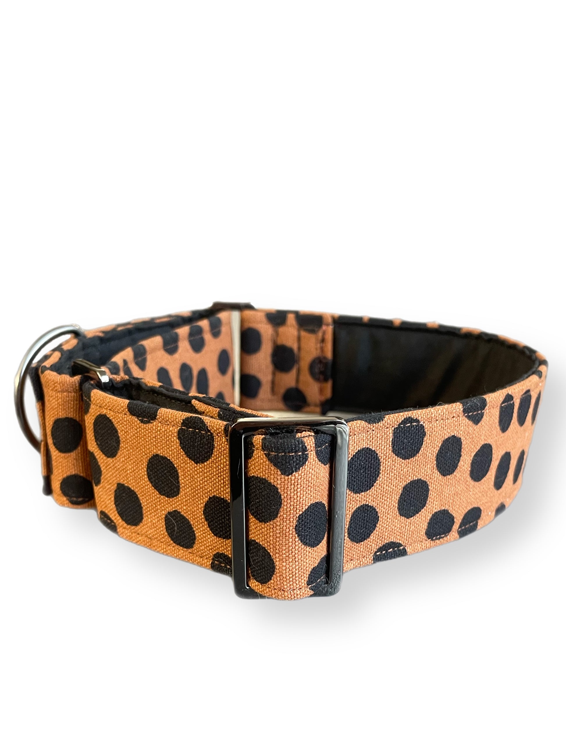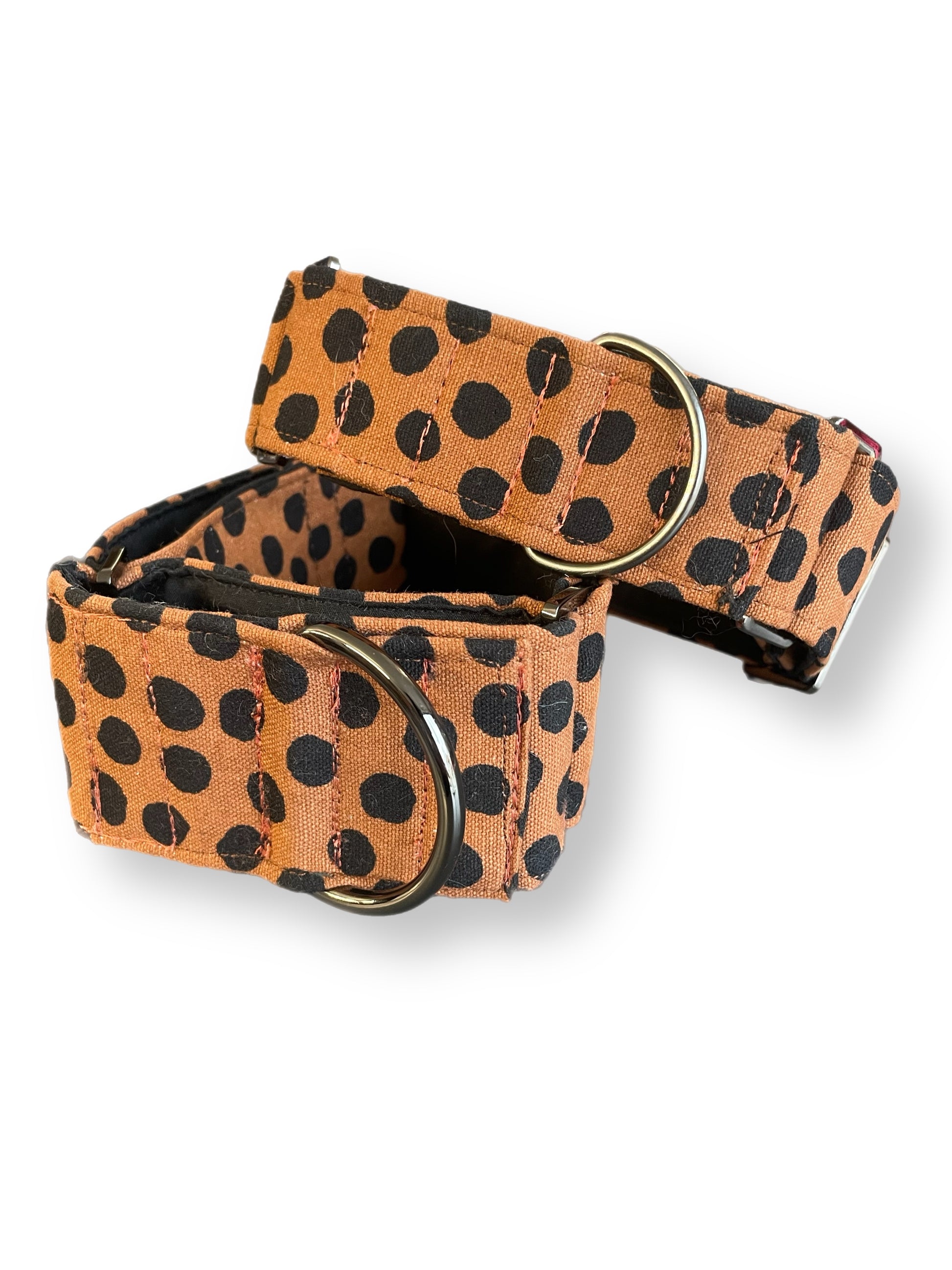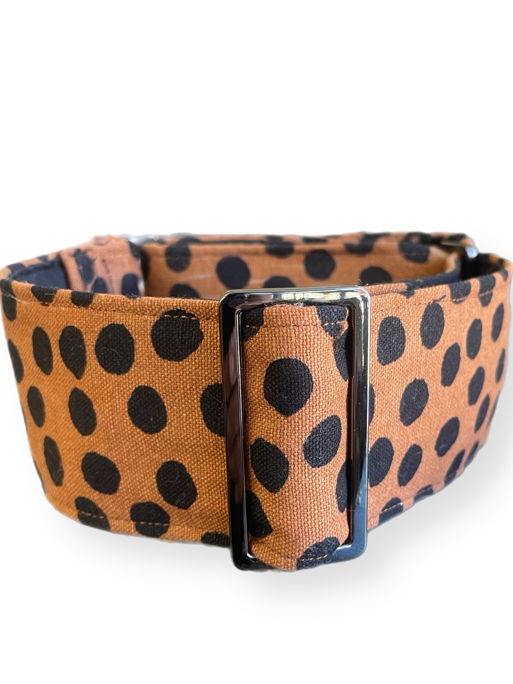 Terracotta with spots greyhound Martingale collar cotton covered wide