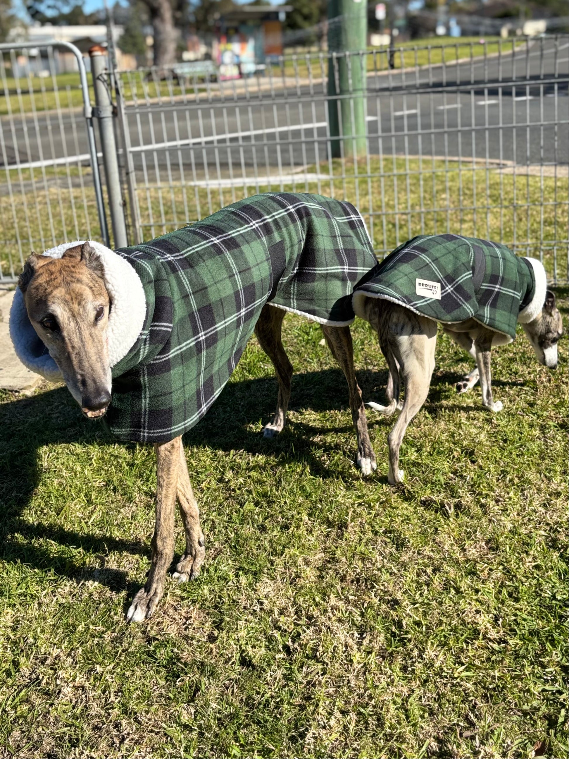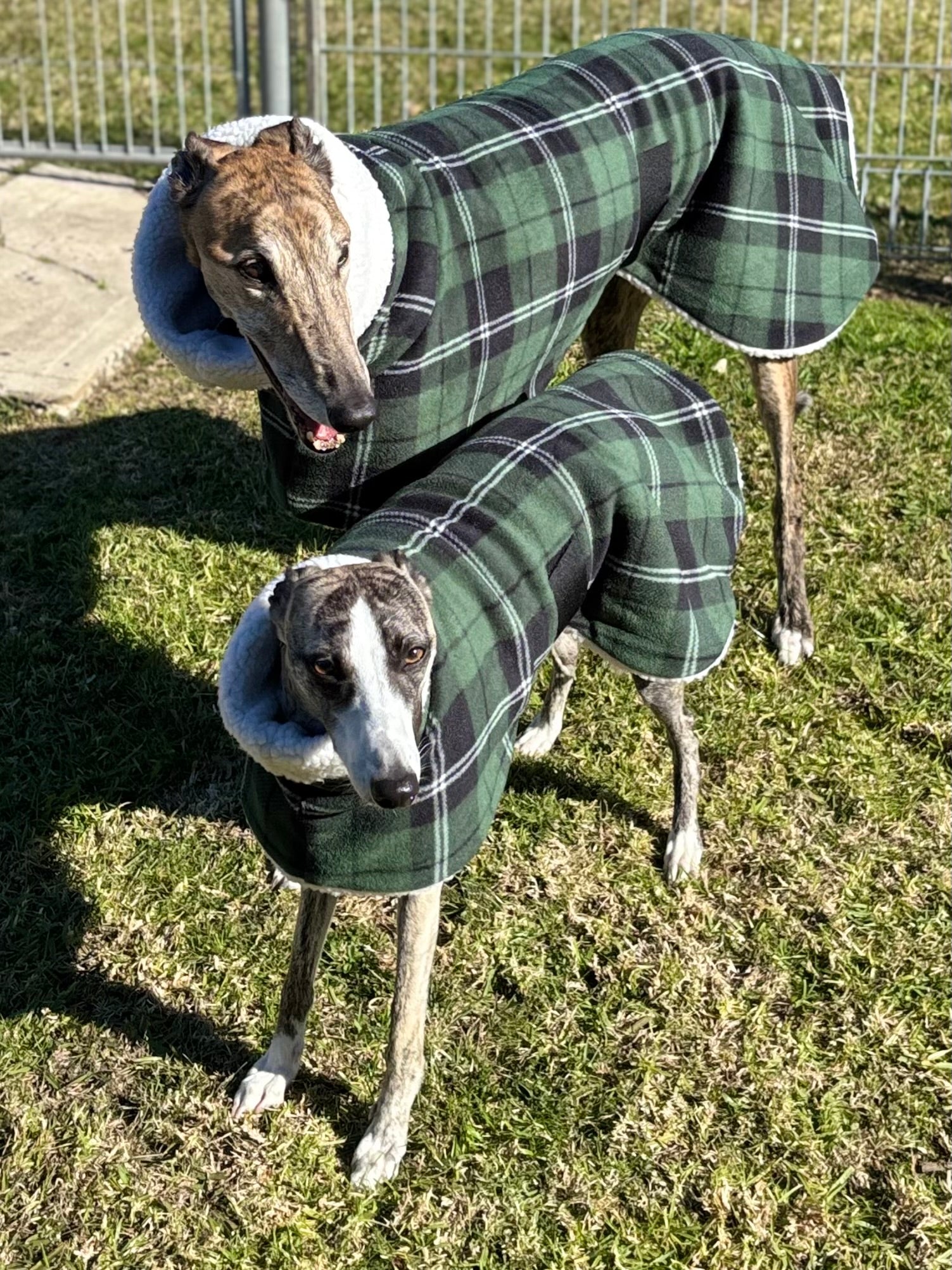 Our coats now come with a sleeve of fleece to slide over the Velcro for a softer feel on your greyhound’s tummy