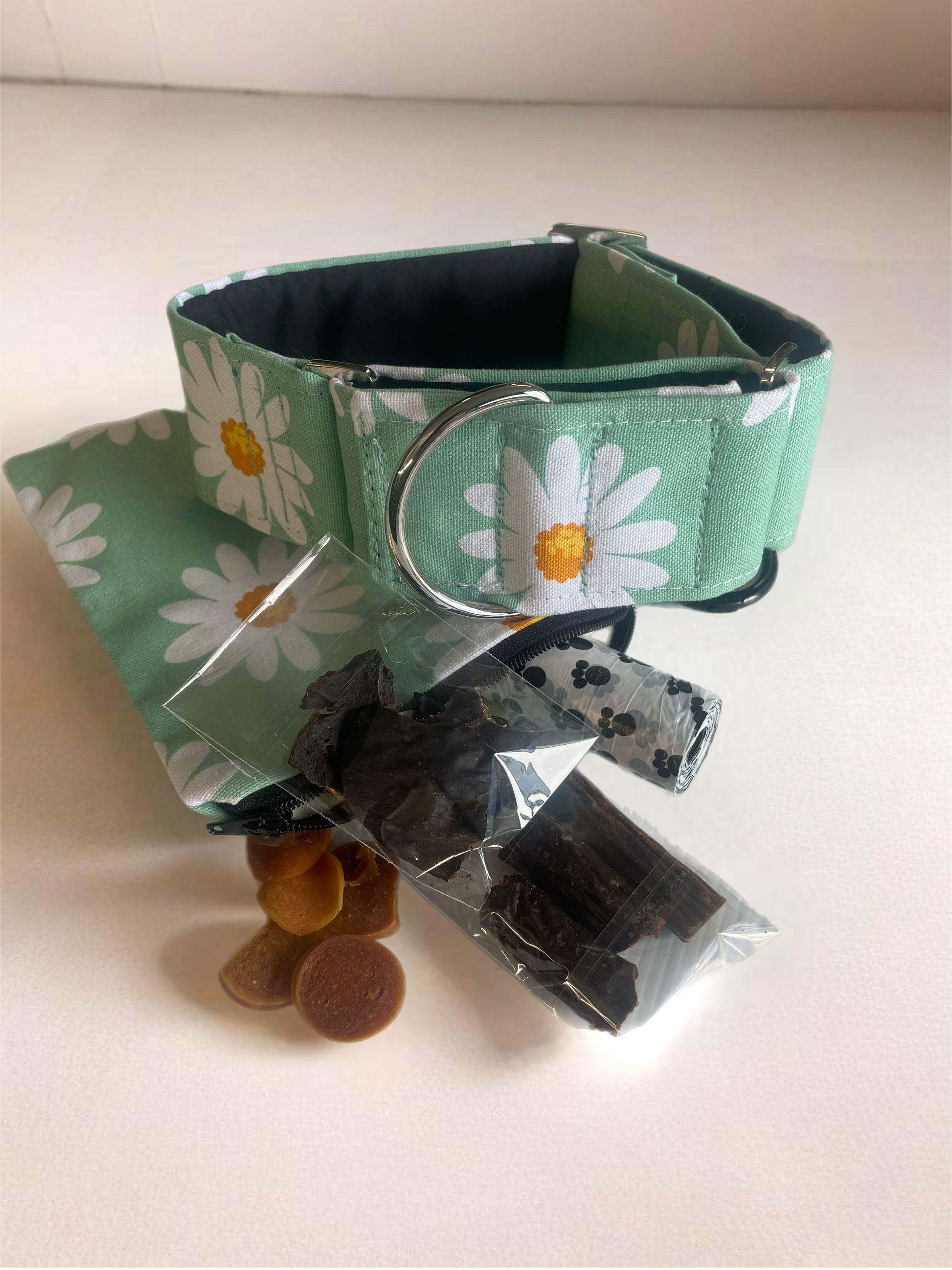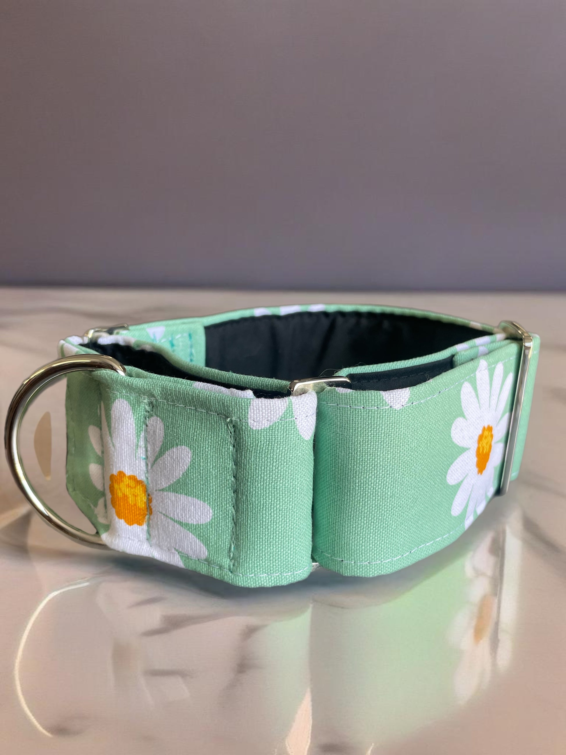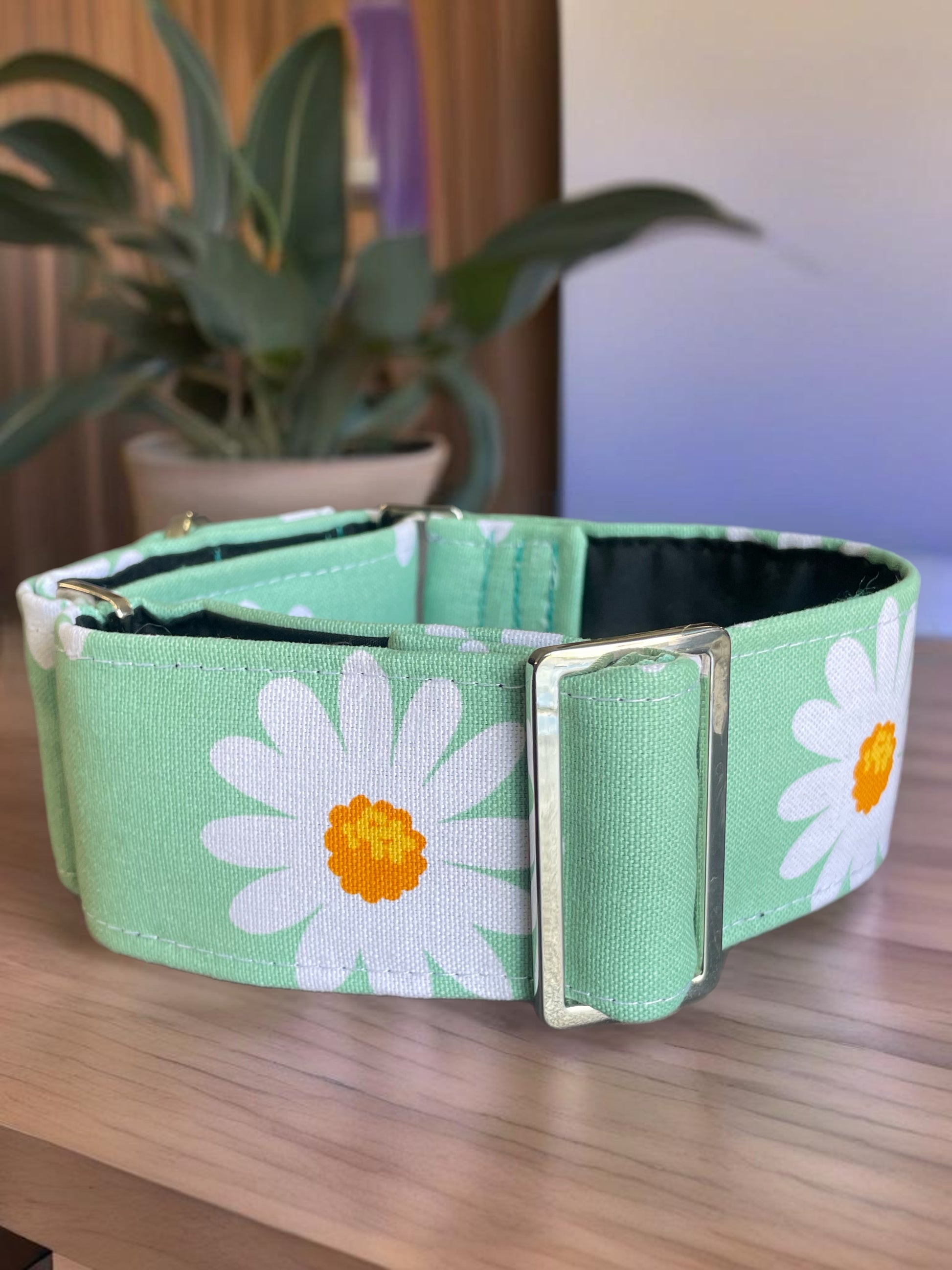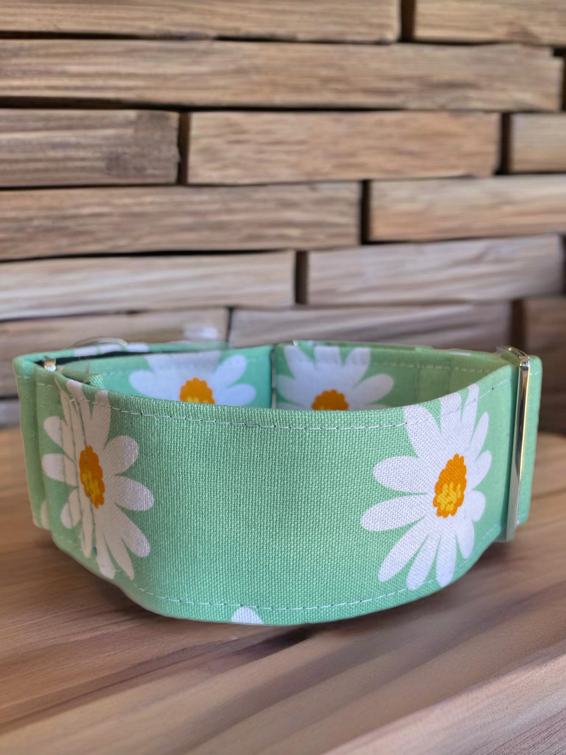 Wide Martingale collar daisies on sage sturdy cotton 50mm width