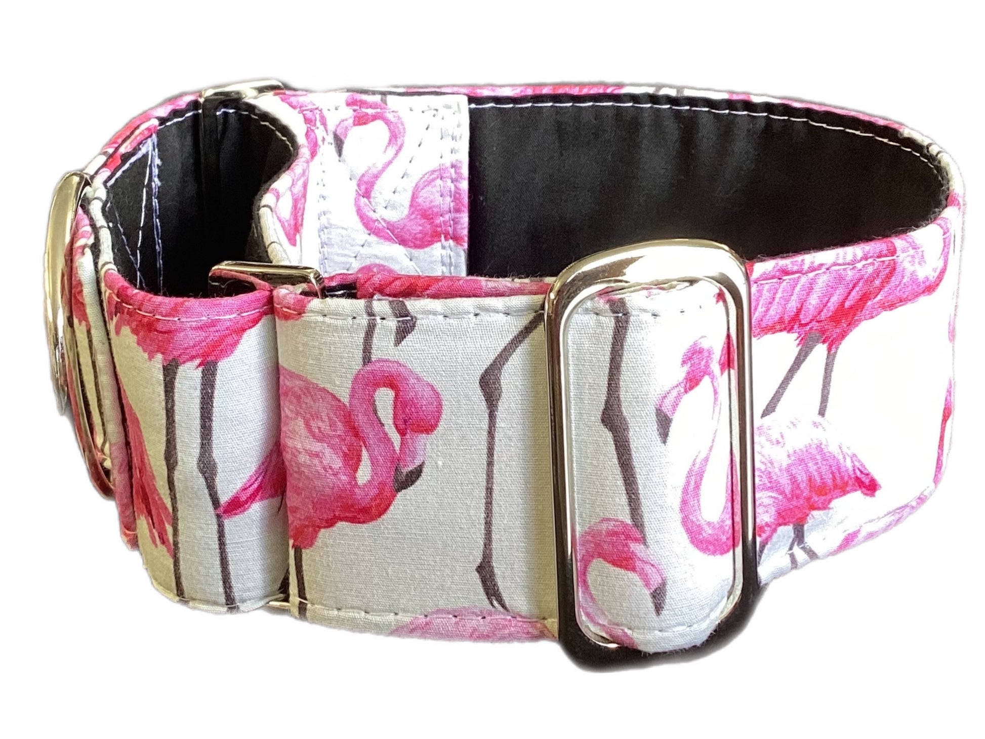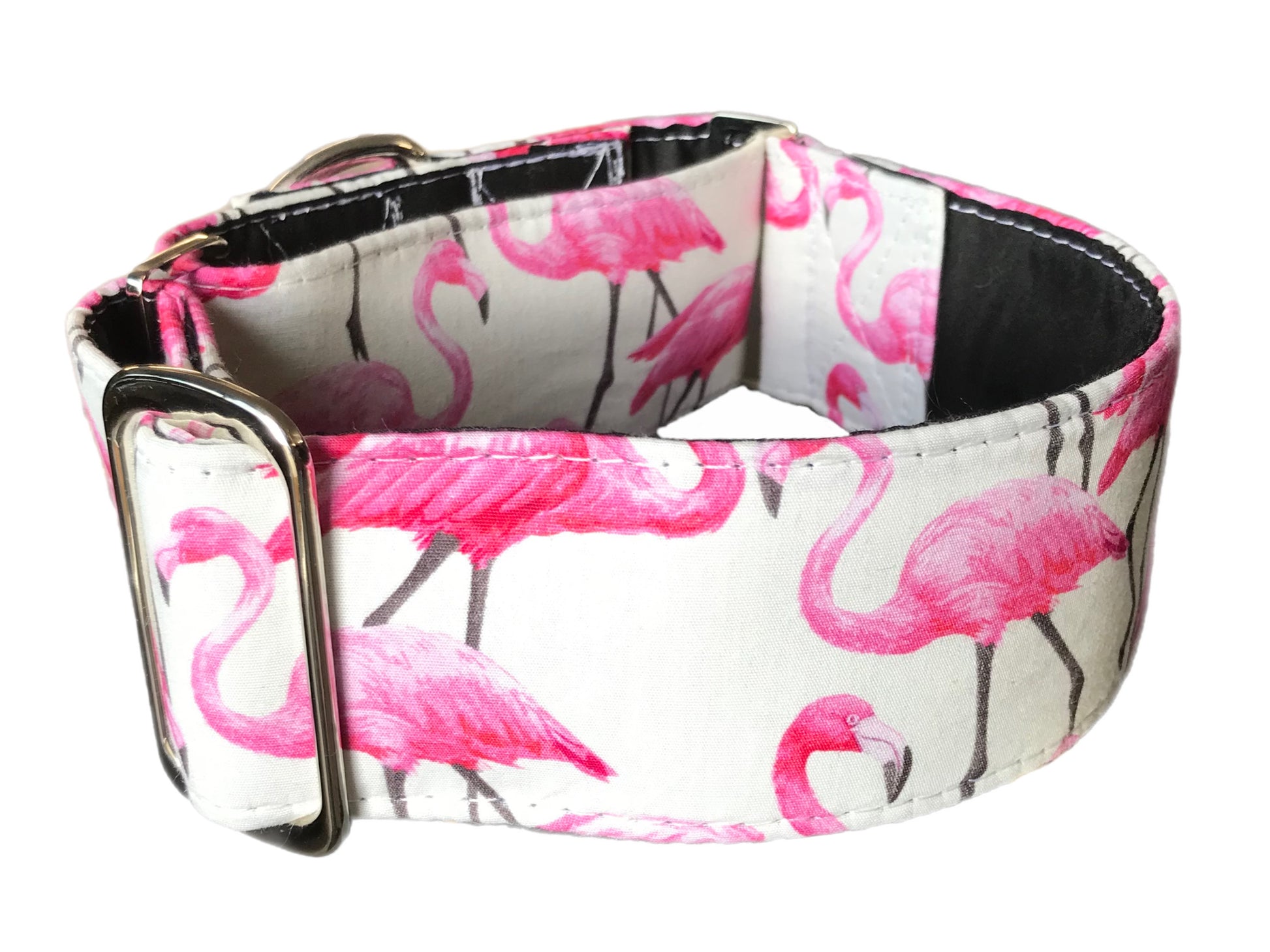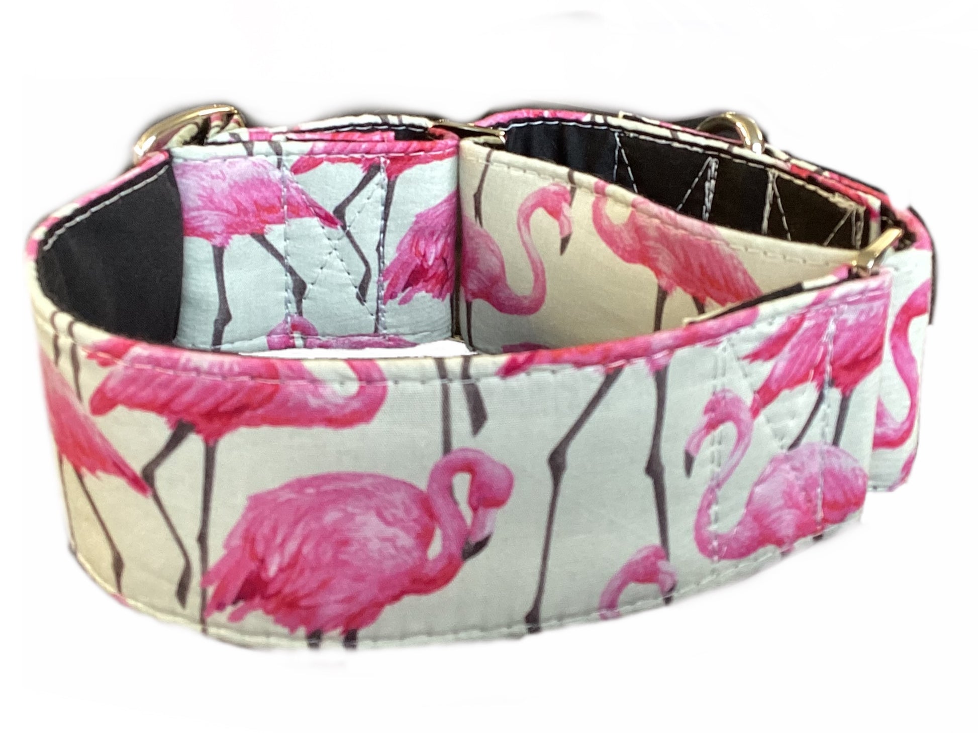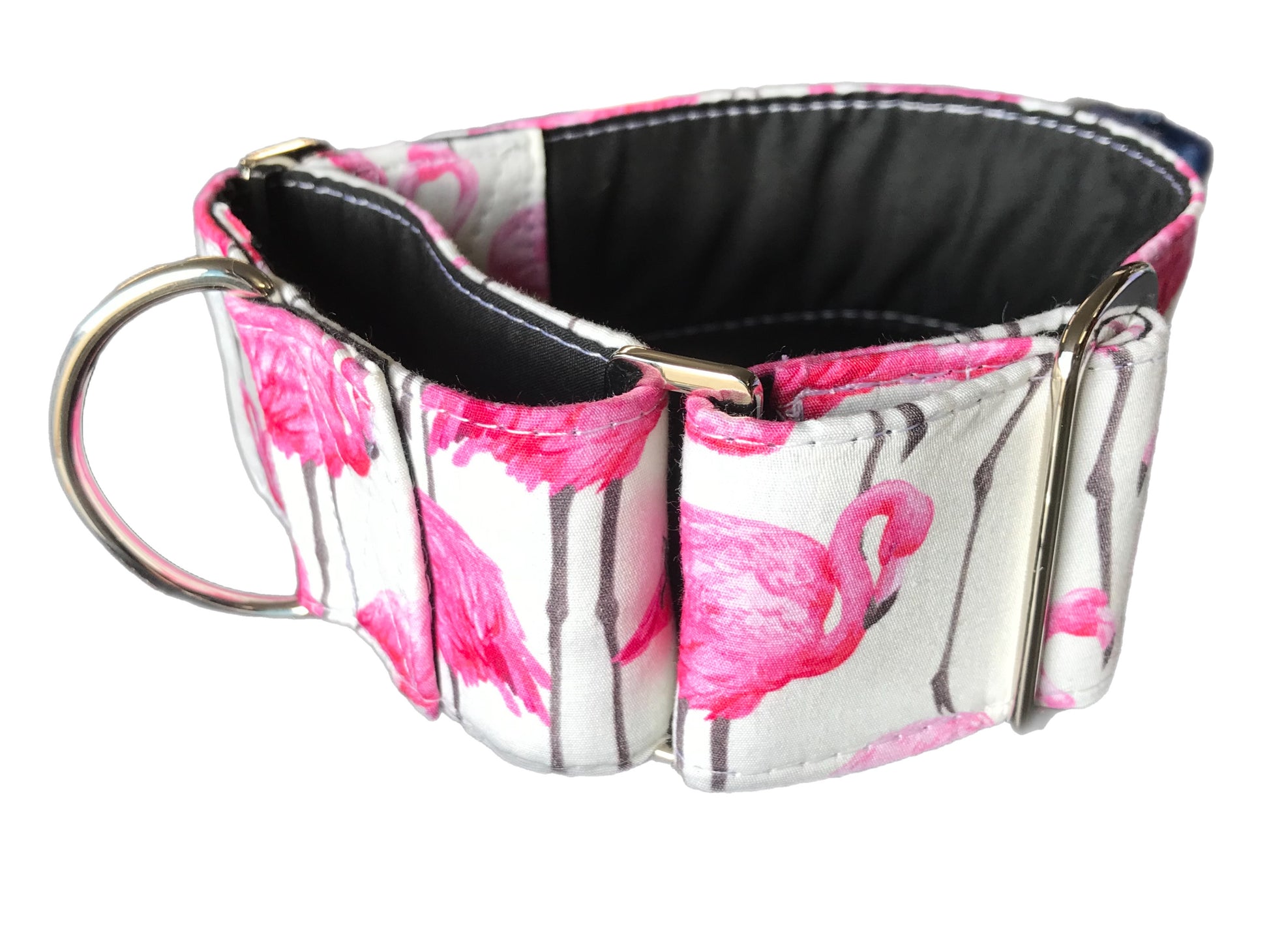 Wide Martingale cotton covered collar pink flamingo 50mm width greyhound super soft